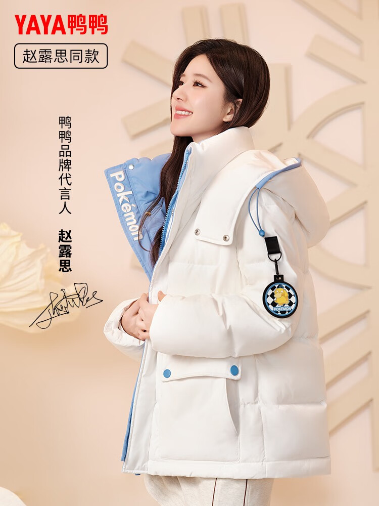 商品名称:鸭鸭(YAYA)【赵露思同款 YAYA宝可梦系列】羽绒服情侣装短款男女同款外套 白色 M