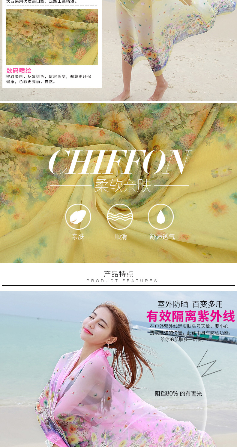 商品名称:卡兰薇 丝巾女春秋超大超长印花百搭空调披肩夏季防晒沙滩巾韩版雪纺 大花朵-黄色